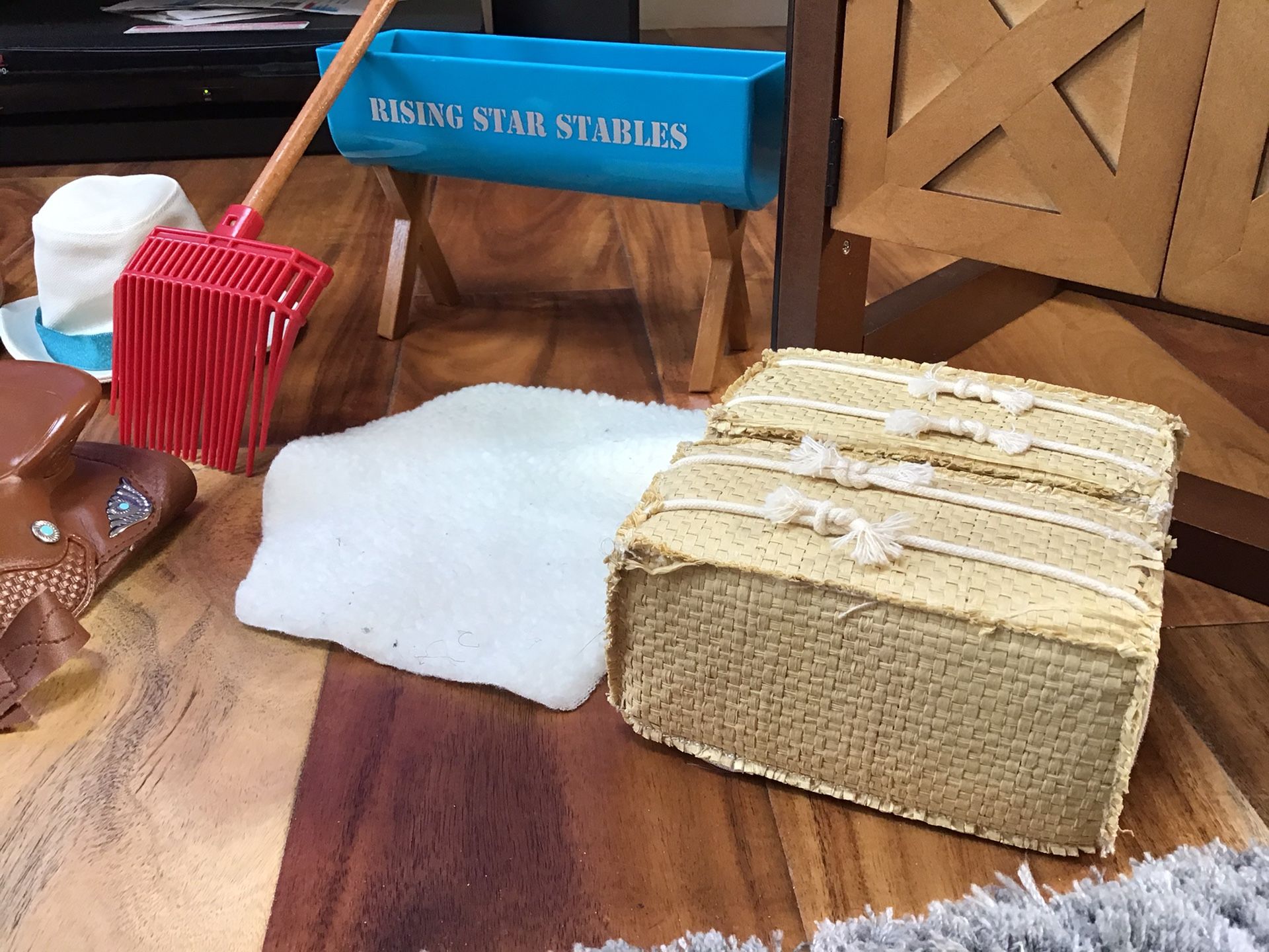 American Girl Stable, Corral, saddle, cowgirl hats, hay bales, pitchfork, trough, blanket. Great condition, Smoke free home, no haggling please.