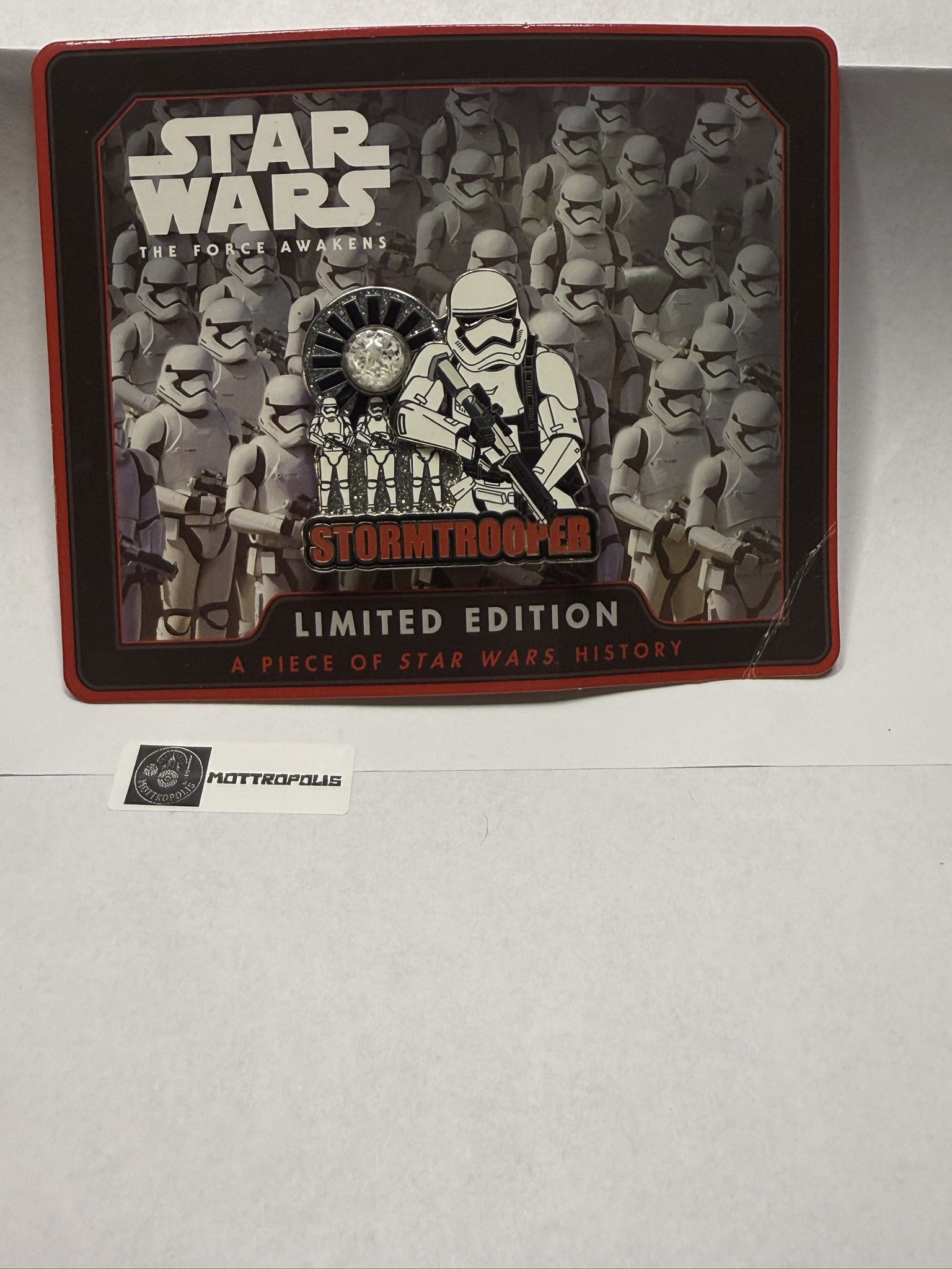 Disney Star Wars Stormtrooper from the Piece of Star Wars History pin series. This is a limited edition with only 4000 made and sold only at Disney Theme Parks. This pin contains a piece of the original stormtrooper costume from the movie. (See pics)
