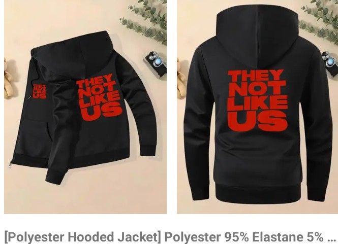 They Not Like Us- Adult Large Polyester Black And Red Zip Up Hooded Jacket