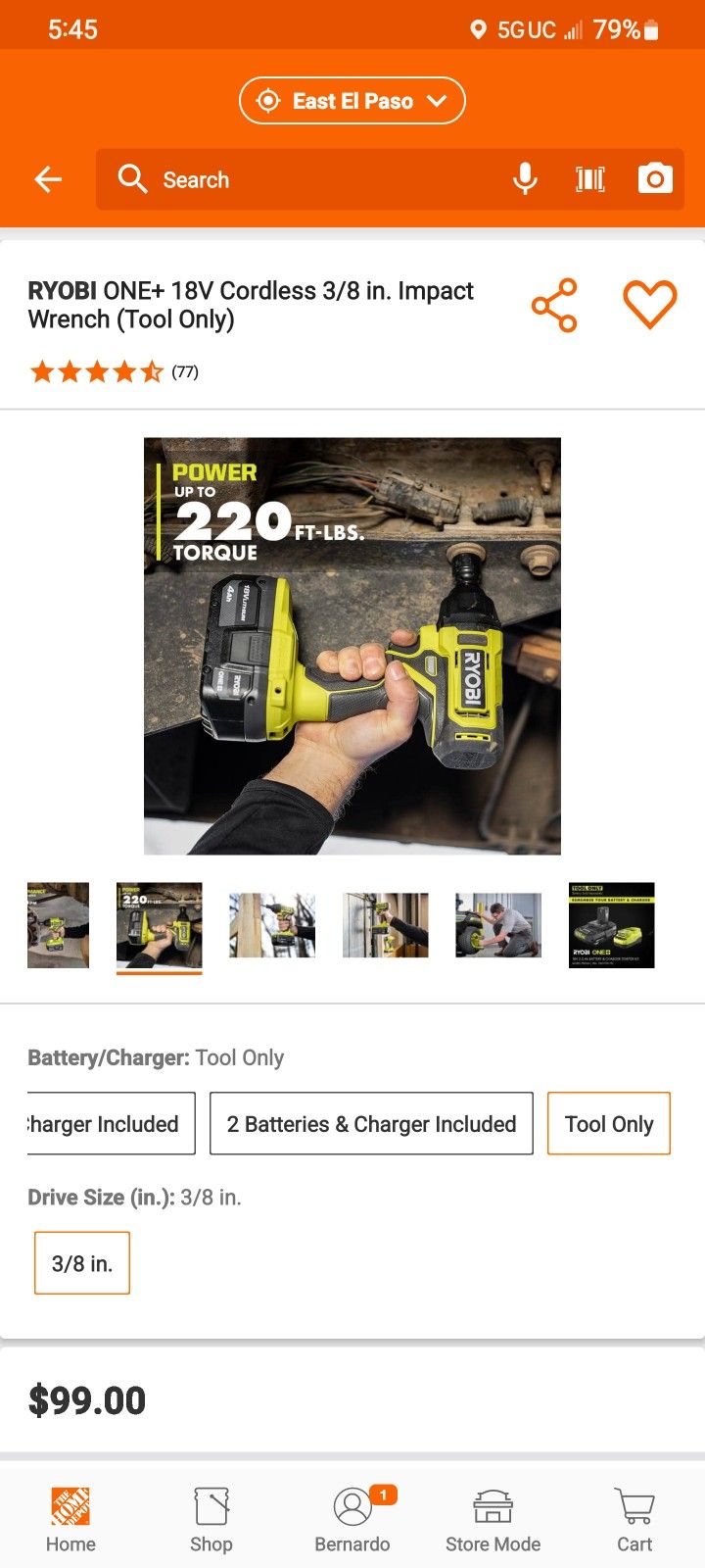 RYOBI ONE+ 18V Cordless 3/8 in. Impact Wrench (Tool Only)