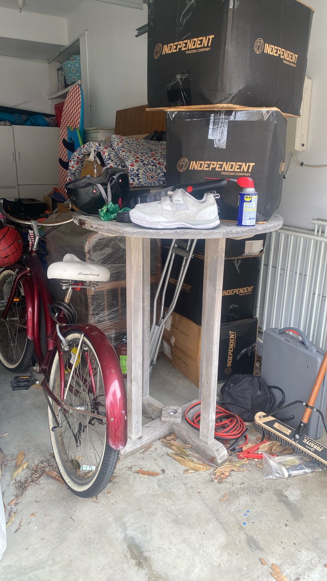 FREE! Please pick up in Manhattan Beach. Top has some resin so will need to be sanded or cover with table cloth. Strong and sturdy