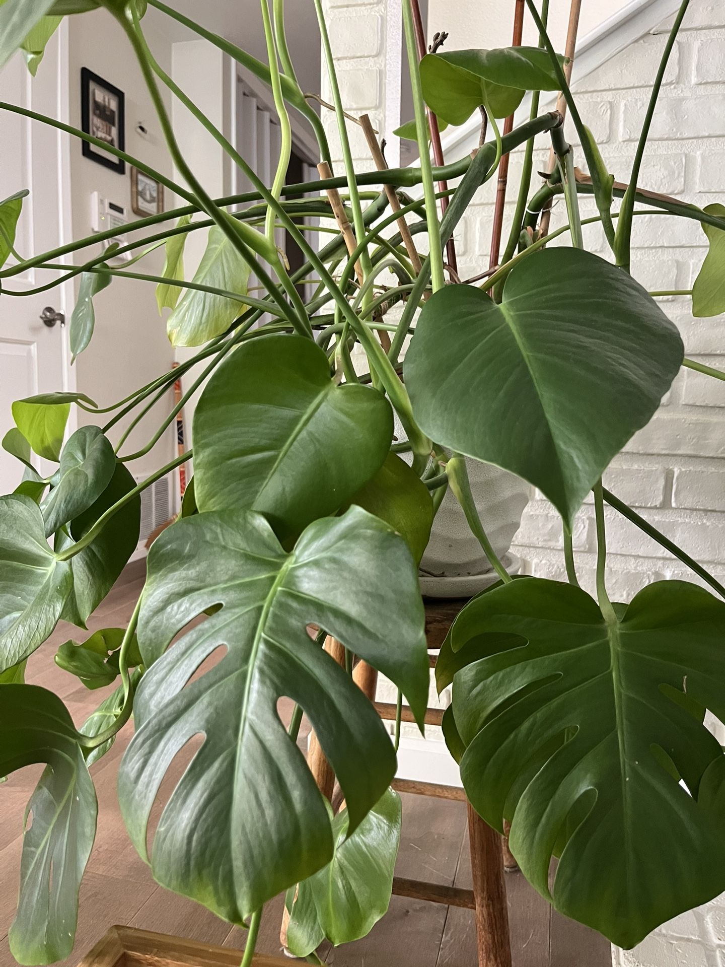I’ve been growing this iconic monstera for the past 4 years but sadly have to part ways with her as she is toxic to cats :( Nothing wrong with her. She’s been comfy in her 12 inch ceramic pot, sitting at 53” wide and 56” tall. Willing to negotiate but please no low balls.