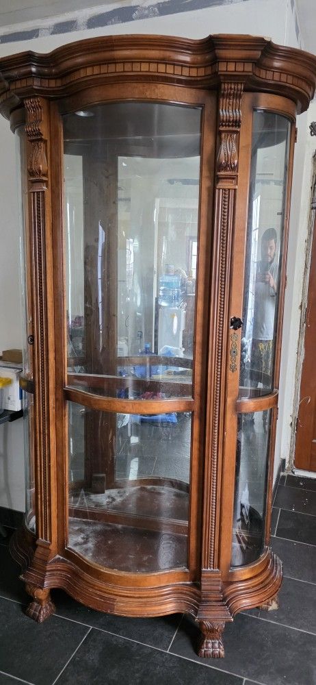 Wooden furniture with mirror inside. Given by a friend but I find no use for it. Has some damage, see photos. Heavy, bring a friend to haul it away.