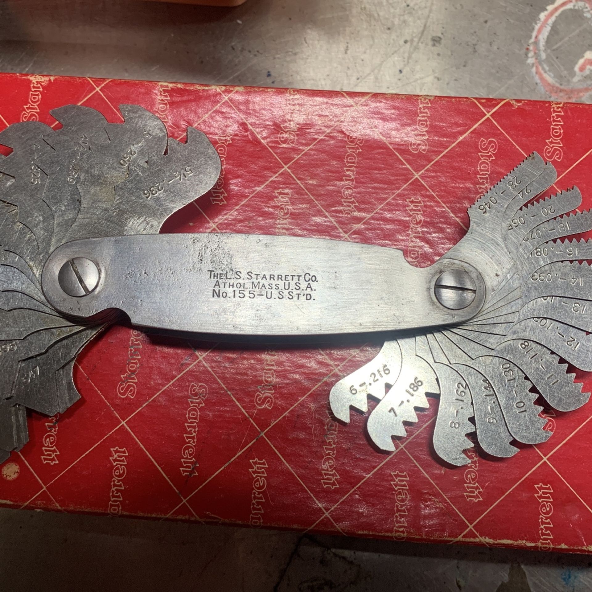 Starrett No 155 Screw Pitch Gage 2 1/4- 28 + 60 Degree Center Gage