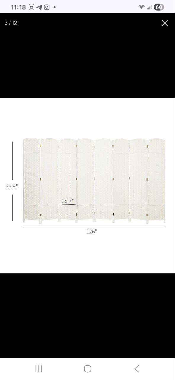 HOMCOM Folding Room Divider Screen 8 Panel 5.6 ' Tall Privacy Screen Freestanding Room Partition for Home Office, White retail price is $119.99