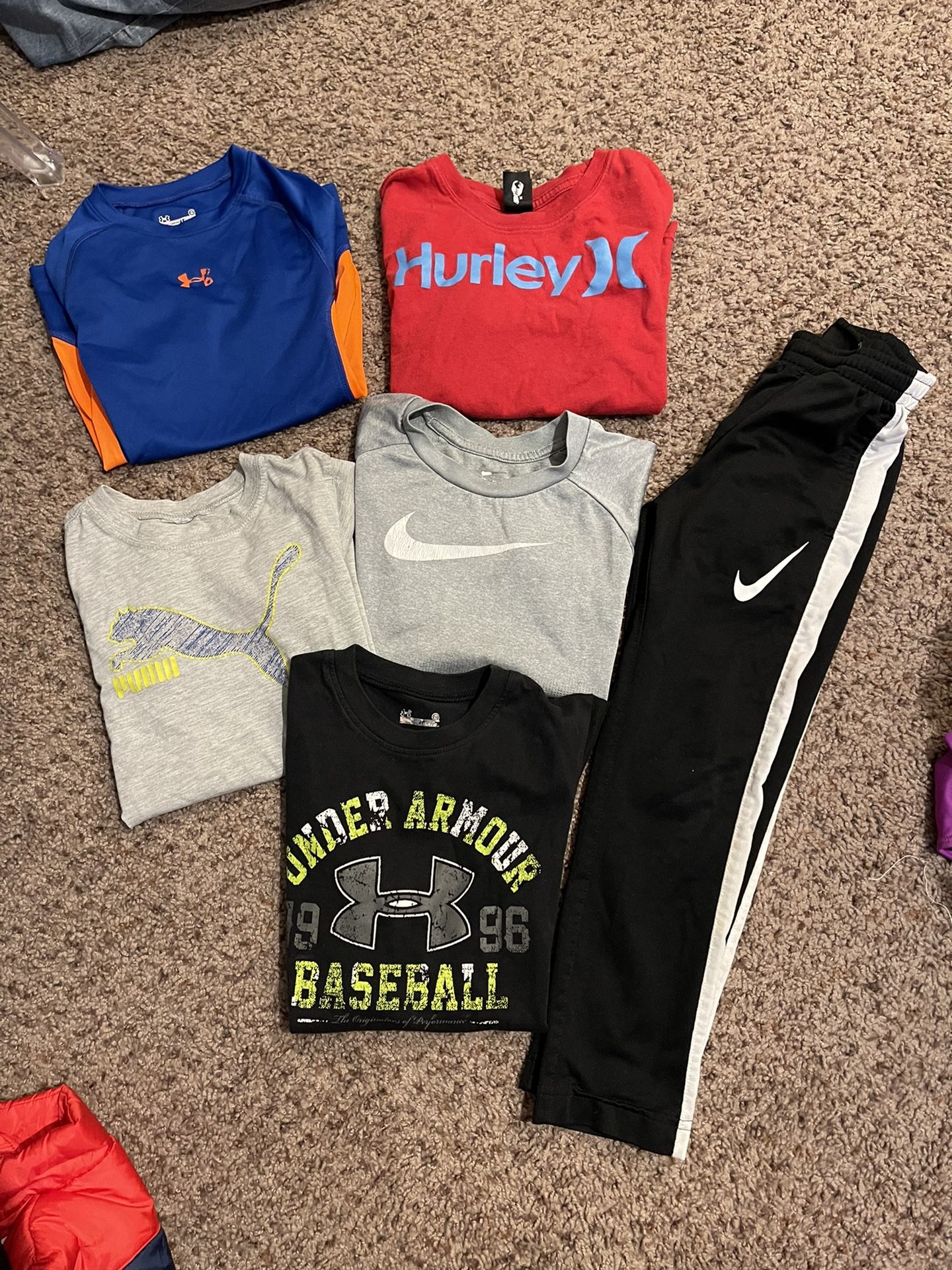 Used bundle size 6 Nike puma etc 5 shirts and one pair sweats all $20