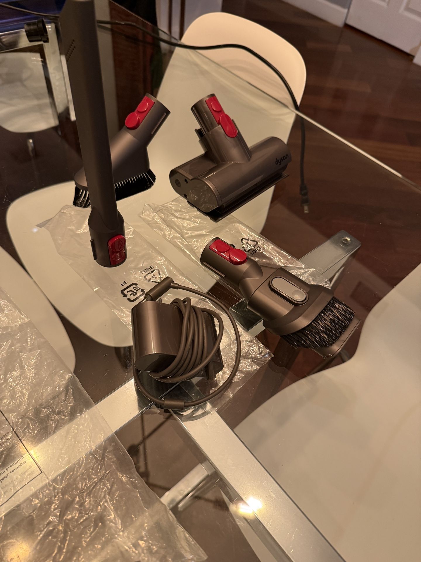 “Brand new genuine Dyson accessory set — includes Mini Motorized Tool, Stubborn Dirt Brush, Combination Tool, and Crevice Tool. Compatible with Dyson V7, V8, V10, V11, V15 cordless vacuums. Never used, excellent condition.”