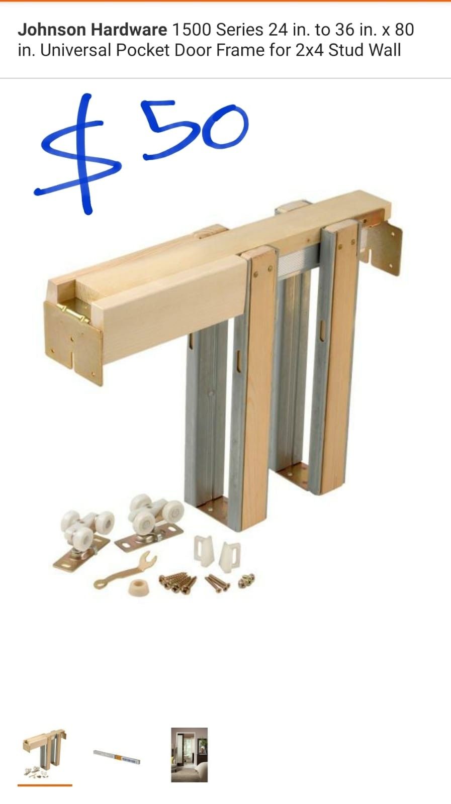 24in to 36in x 80in pocket door frame hardware kit