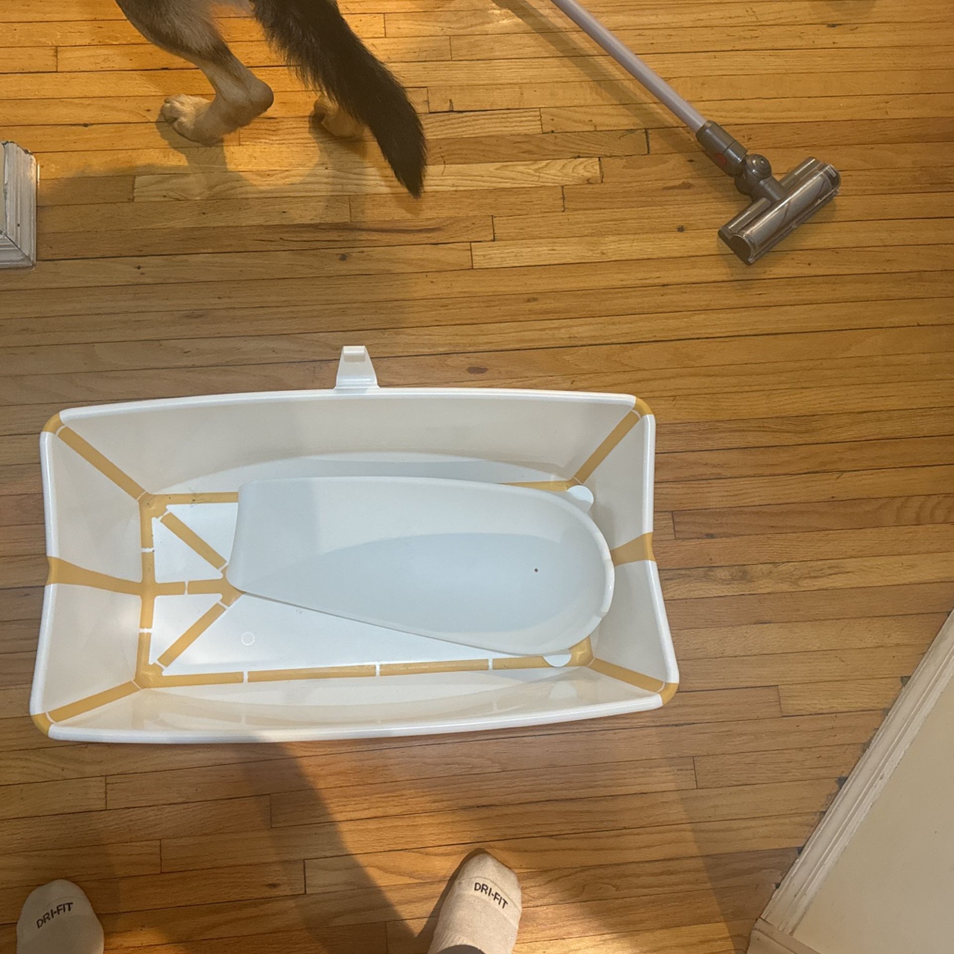 Never used. Good for newborns folds away pretty compact as seen in picture Retails $79
