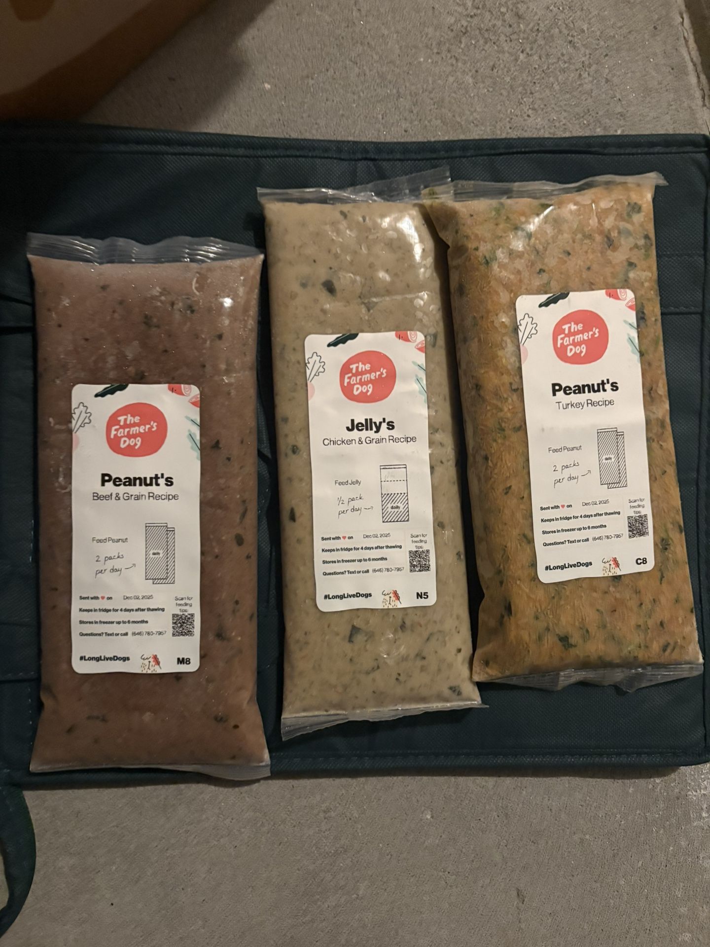 I have Farmers Dog food just received on December 5!! 5 A pack if you buy in bulk will give treats to. If you buy in bulk will give discount Need gone Asap All flavors in pictures! 64 Ava 2 Bags of treats