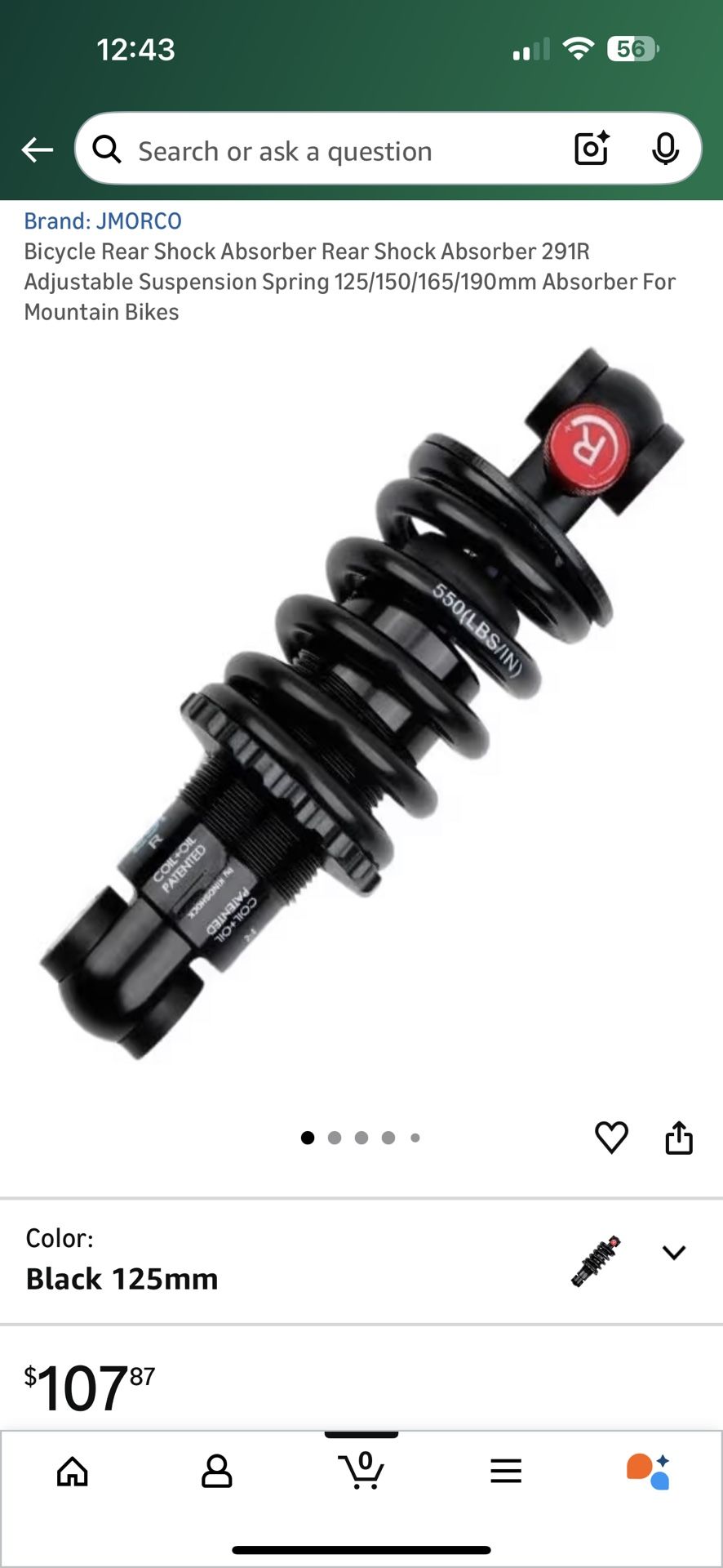 Bicycle Rear Shock Absorber Rear Shock Absorber 291R Adjustable Suspension Spring 125mm from eye to eye Absorber For Mountain Bikes. Brand new.