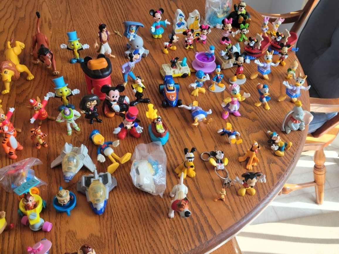 Large lot, APPROXIMATELY 72, Disney figures, some 3 inches tall and others 1.5 inches tall.