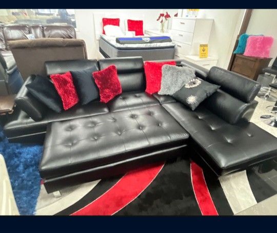 *Summer Sale Event*---Ibiza Sleek Black Leather Sectional Sofa W/Ottoman---Delivery And Financing Available💪