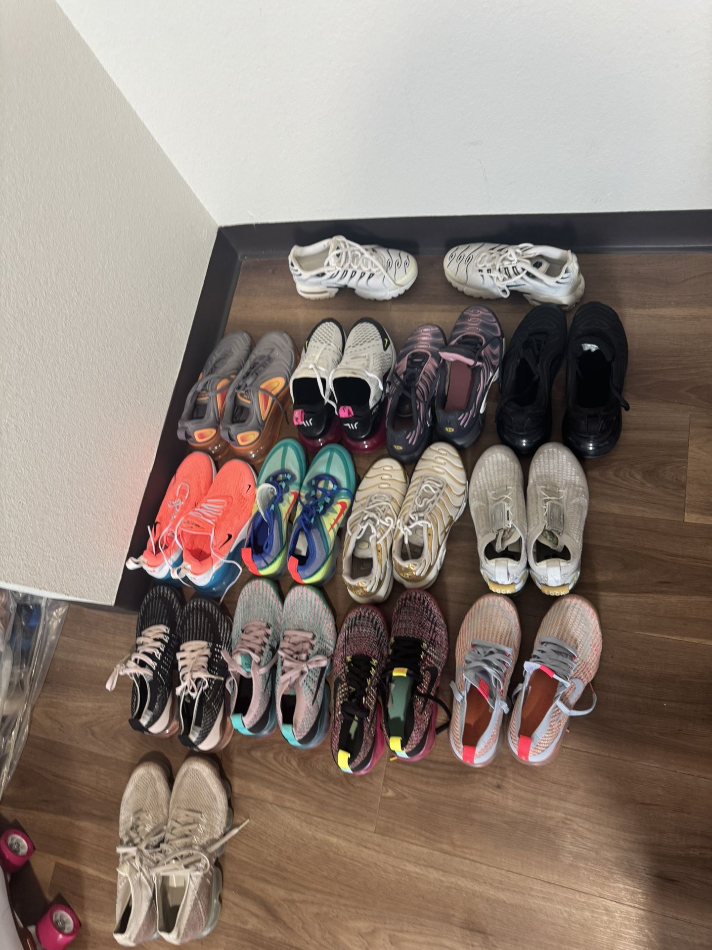Shoes-1 row- 5.5, 2 row 5.5, 3 row 6, 4 row 7, and 5 row 7.5. 450 for all or obo. All new