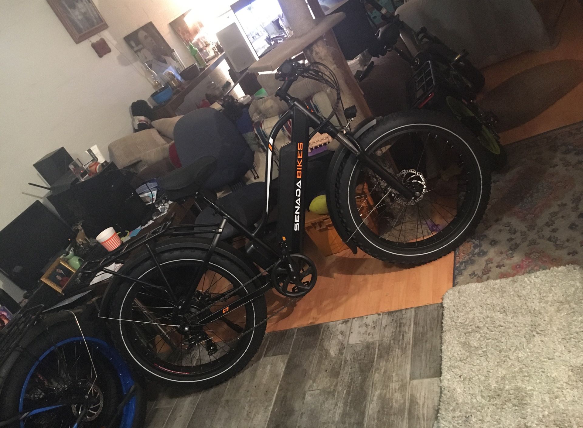 New Super Awesome Herald Pro!!! Senadas Top of their lineup E-Bike for sale, 2100 list!!! This Herald Pro Super E-Bike, is by far the Best deal I have on every level, with crazy 95 Newton meters of wheel spinning torque and 35 mph. This is a true Hybrid, the Super bike of your dreams and has a 5 inches lower top tube height than a regular top tube and will accommodate any height people and still looks cool!!! This is the Only place in the world where you can get a 1000 watt motor with the crazy 95 Newton meters of torque!!! From setting 1 to 5, as low as 12 mph on #1 and 30 plus mph on #5, others bikes 16 to 25 mph for same price!!! Stupid 60/80 mile range and depends on whether U peddle and or use peddle assist or not, 48 volt lithium ion battery with 21 amp hrs run time, Super torque 1000 Watt, monster motor w/95 Newton meters of super torque in this brushless motor, others are 500, 750 watt, and half the torque, poor them!!! Black with some highlights, is what I carry but can get, all white with red highlights and black rim’s, all very cool indeed!!! Front fork with lockout, Huge 180mm disc brakes, 7 speed Shimano shifter and durrailure. Big soft seat, 26 by 4 inch knobbies, integrated led front light and rear taillight, break light and left right turn signals and rear, long fenders, Big and much better stopping with Huge 180mm Disc that stop on a dime etc etc . So much on it can't list it all!!! This is selling for 1,600.00, so Message me and I will get back to you asap and thanks for looking! Oh yeah come by for a demo ride for free, as many as you want!!! 2 year warranty from Senada ebikes on everything but battery that is one year and I Handle all for you and the industry Leading 5 Years of free adjusting, tuning if needed anytime from me. Although these are tanks and never seen one with issues yet but I am here if you need anything. No one else offers this kind of protection at any price, period!!! Oh yeah, can make any old bike {or new} into a awesome custom E-Bike with any amount of power and distance you want, it all depends on how much money you want to spend!!! Have fun be free and own the streets!!! Maybe slow to respond as do this on a computer but check off and on day and night so thx for your patience! Just message me to come see and ride this monster!!! Thx soooooo much for looking and hope to see you soon, Dana. Do yourself a favor and do research so you don’t offer half of the full value and look Stupid!!!!! No Lowball offers, Stupid Low offers will be deleted!!!