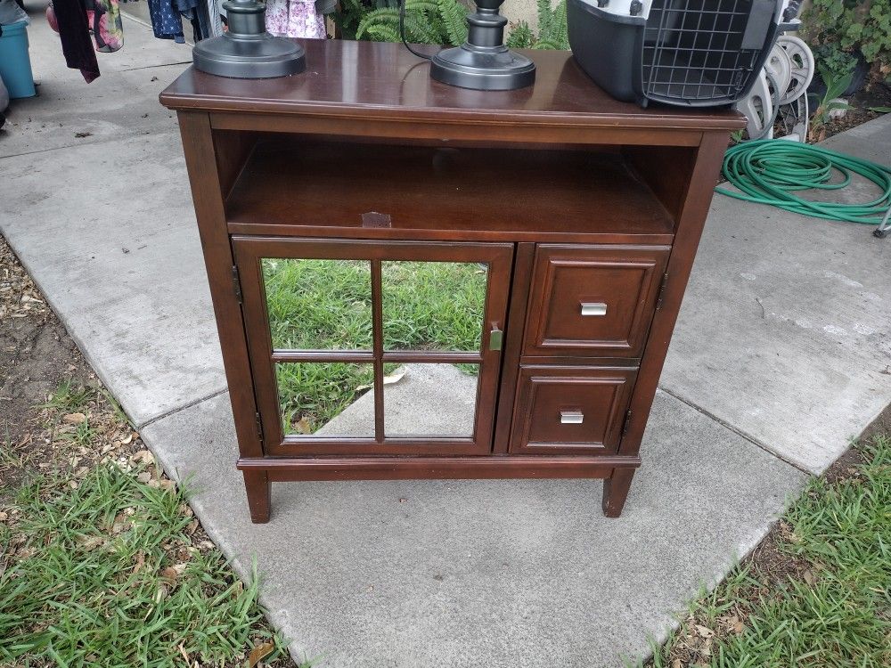 A small cabinet with two doors for storing things on great condition almost no damage. The measurements are height is 3 ft length is 2 ft 10 in and the width is 1 ft 5 in. If you need a reference of the measurements click on the diagram picture.