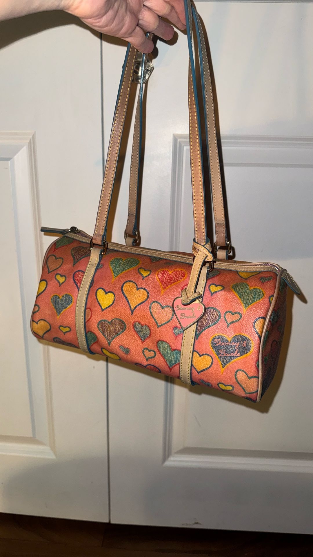 Dooney & Bourke’s heart-patterned series popular in the Y2K era, specifically styles like barrel or satchel prints. Love this but need to part. She needs to be cleaned I’m sorry!