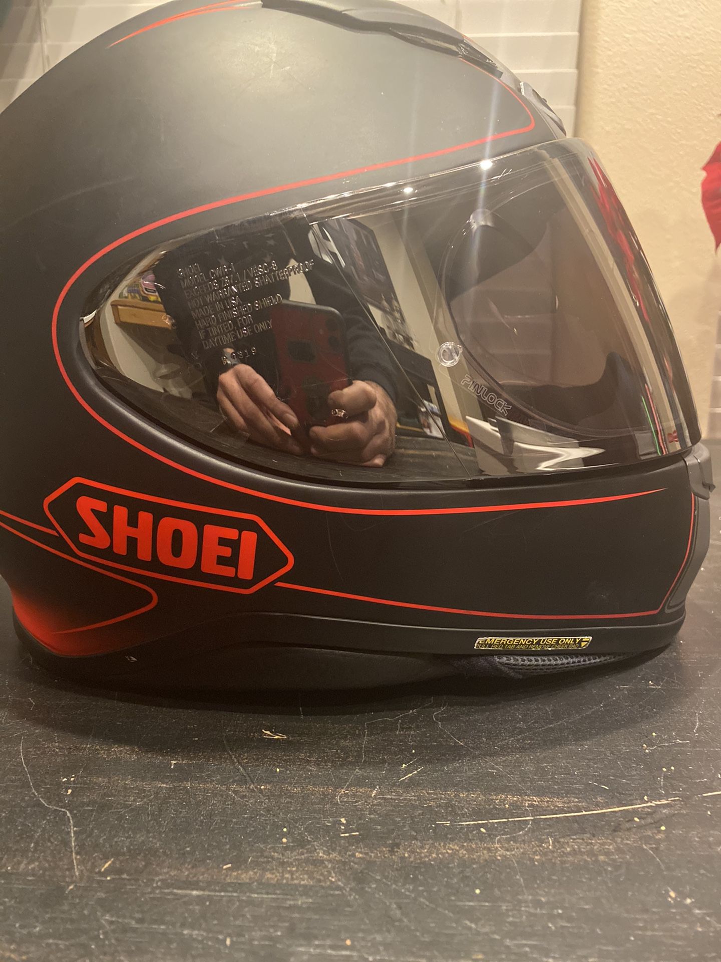 Size: Large Excellent condition. New pads only used a couple times. I paid over $600 new + the cost of the pinlock, mirror visor and pads. Never dropped. Always stored inside. Not in the garage. Includes: Helmet Mirror visor Clear visor Pinlock Will not include Sena or Sena mount. Quiet and light helmet. Snell and DOT approved. Serious inquiries only. If you’re looking at this helmet, you probably already know all about the Shoei RF-1200 I just have 1 too many helmets.