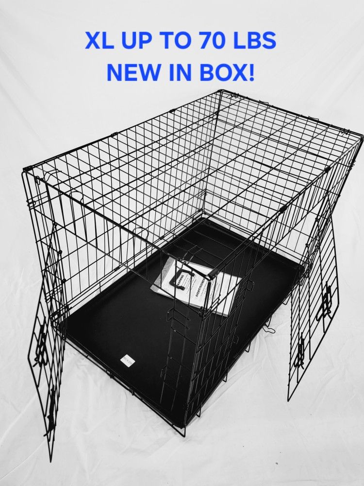 New IN Box! L'xl Dog Crate 2 Doors With Tray Up To 70lbs Folding Puppy Dog Kennel Animal Cage Add A Bed For $15 4th Of july Fireworks Pet Anxiety Cage