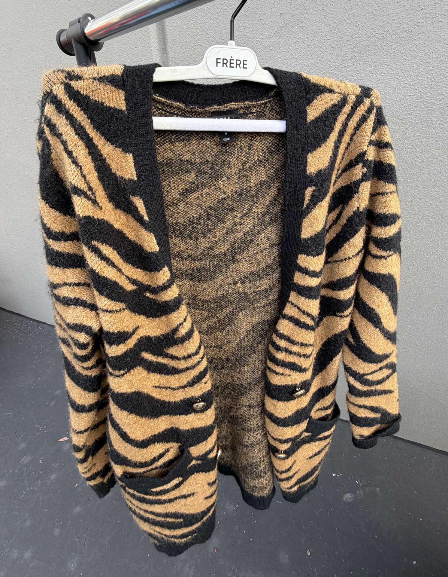 INC International Concepts Animal Print Knit Cardigan Sweater Brown Black Women