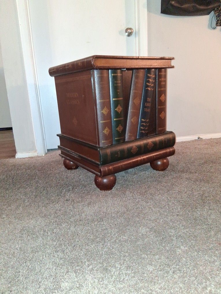 Hi, selling this antique table, book case shelf Its very neat, disguised as a book shelf it opens as a storage box and has one drawer that opens as well