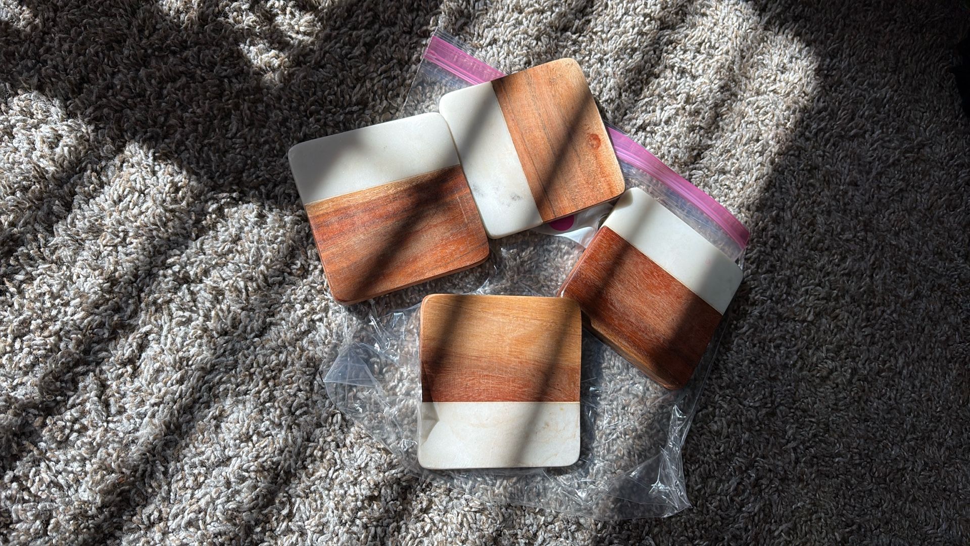 Granite and wood coasters. They’re heavy & nice! Set of 4.