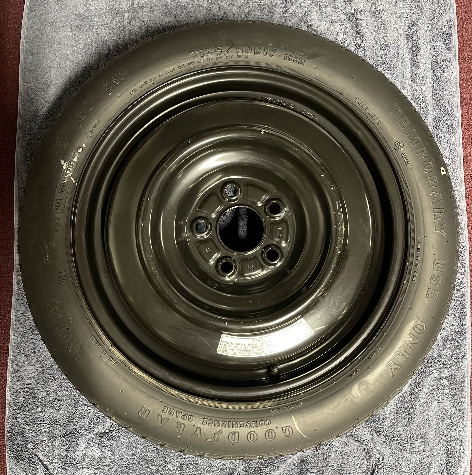 Spare Tire/Wheel 135/80R17 Goodyear (Convenience Spare) Brand new in case of Emergencies. Stored in the garage.