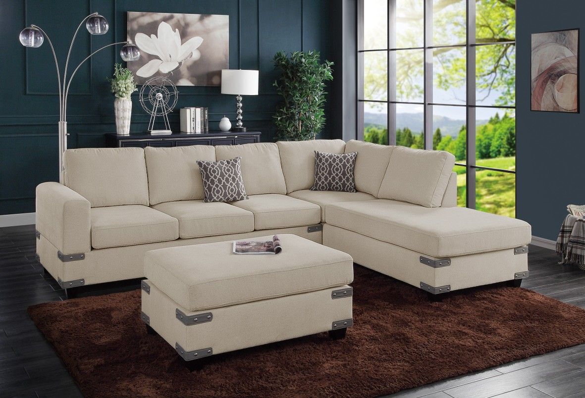 Brand New 112" x84" Biege Chenille Reversible Sectional + Ottoman