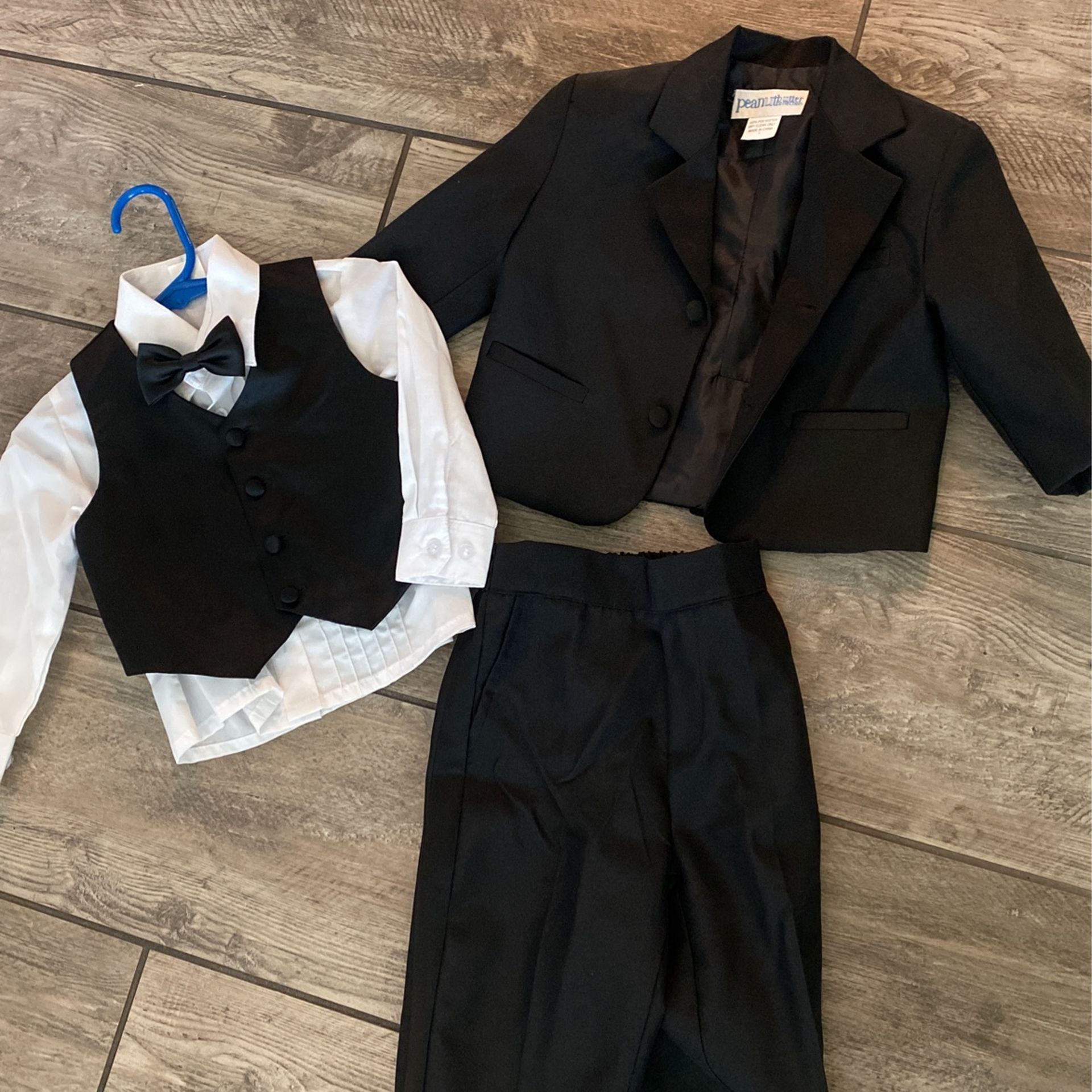 Tux with jacket, vest, long sleeve shirt and elastic waist pants. *my son wore it once and was 13 months old for size reference. Located near 24th st and Indian school