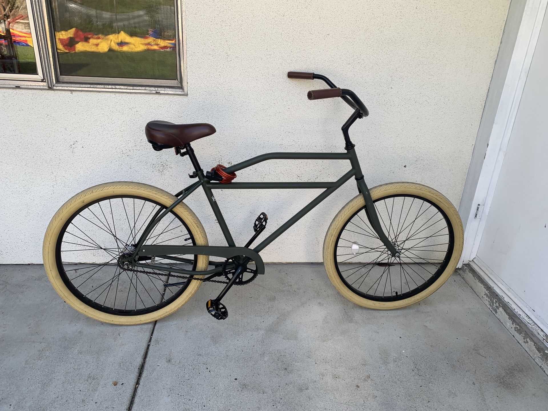 STEADY CLASSIC BEACH CRUISER BIKE, DUAL- SPEED, 26" WHEELS, COASTER BREAKS, TIRES HOLDING AIR. IN GOOD RUNNING CONDITION. READY TO RIDE.