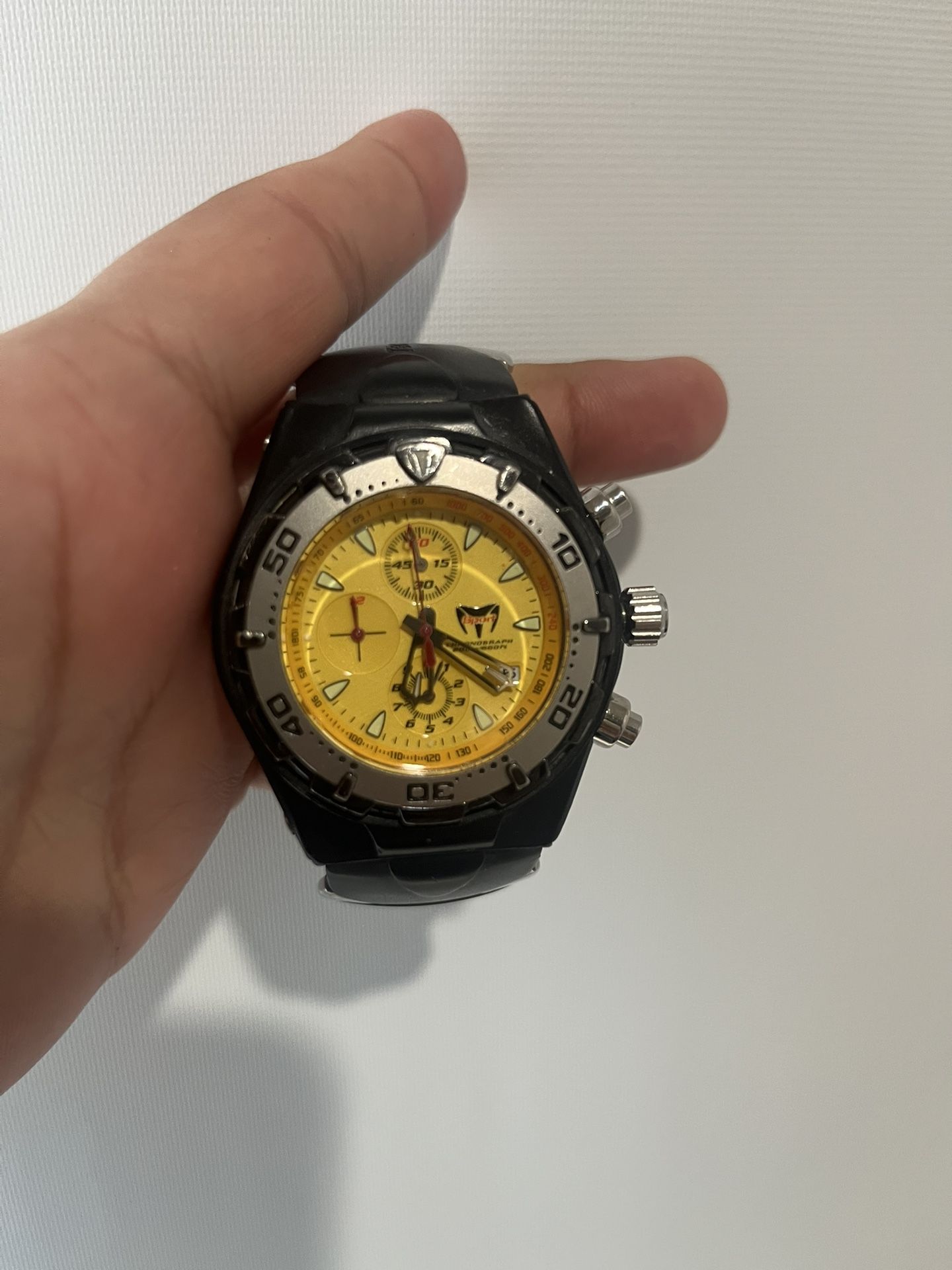Vintage Technomarine Watch With Yellow Face And Black Gum Bracelet