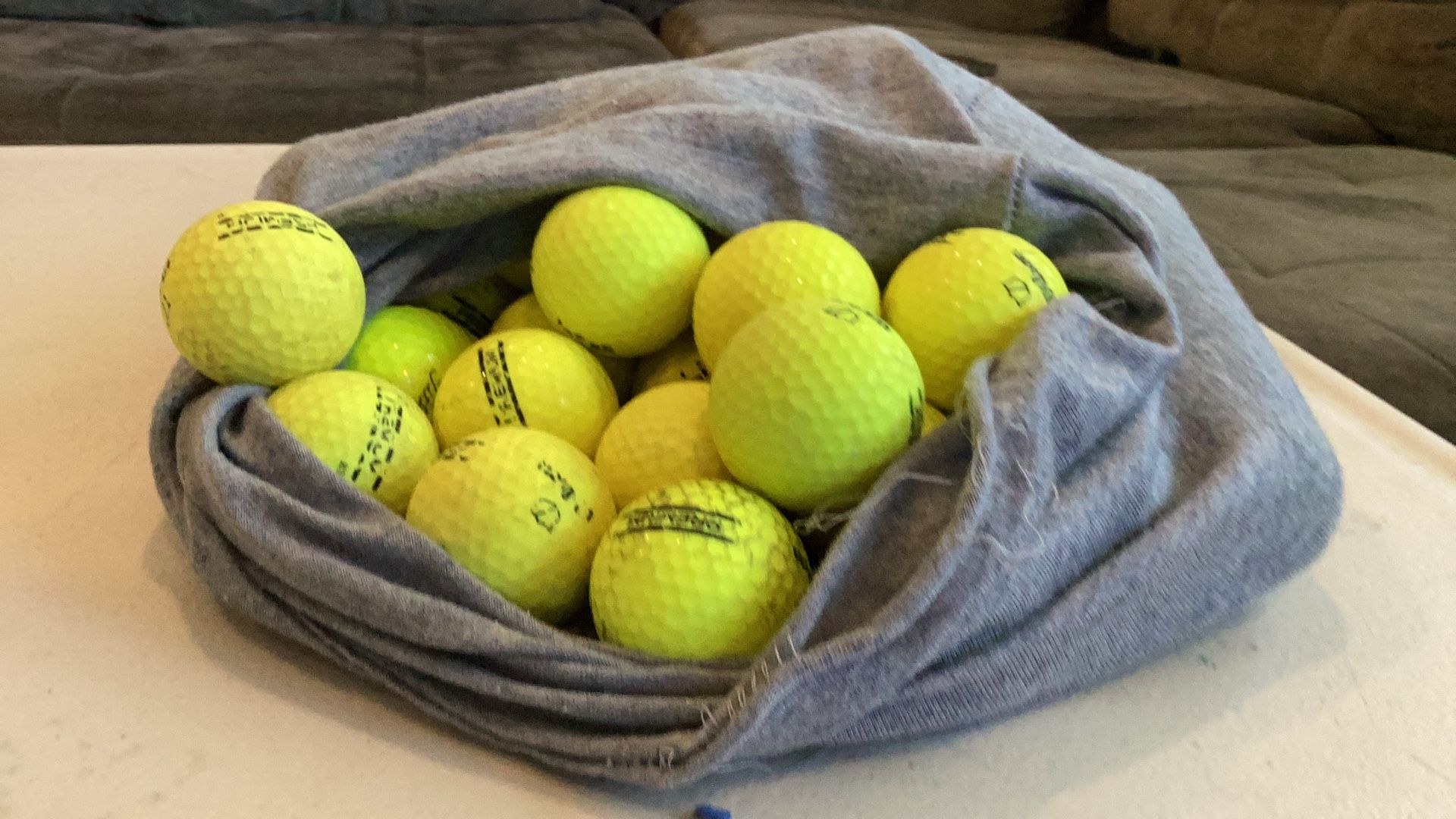 Full Sack Of Yellow Golfballs
