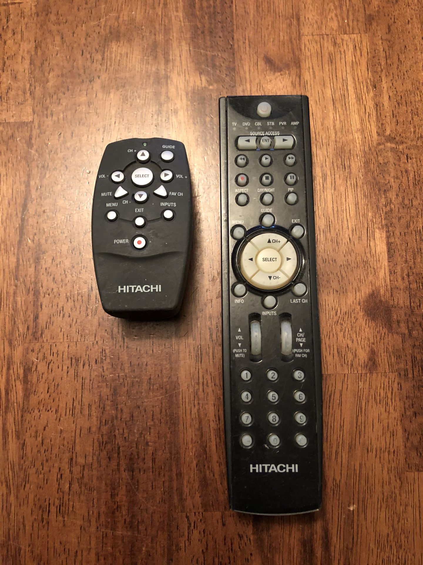 Both these Hitachi remotes came with my Directors Series tv before it was pulled off my wall and stolen. Guess they didn’t need them so make offer. Thank you.