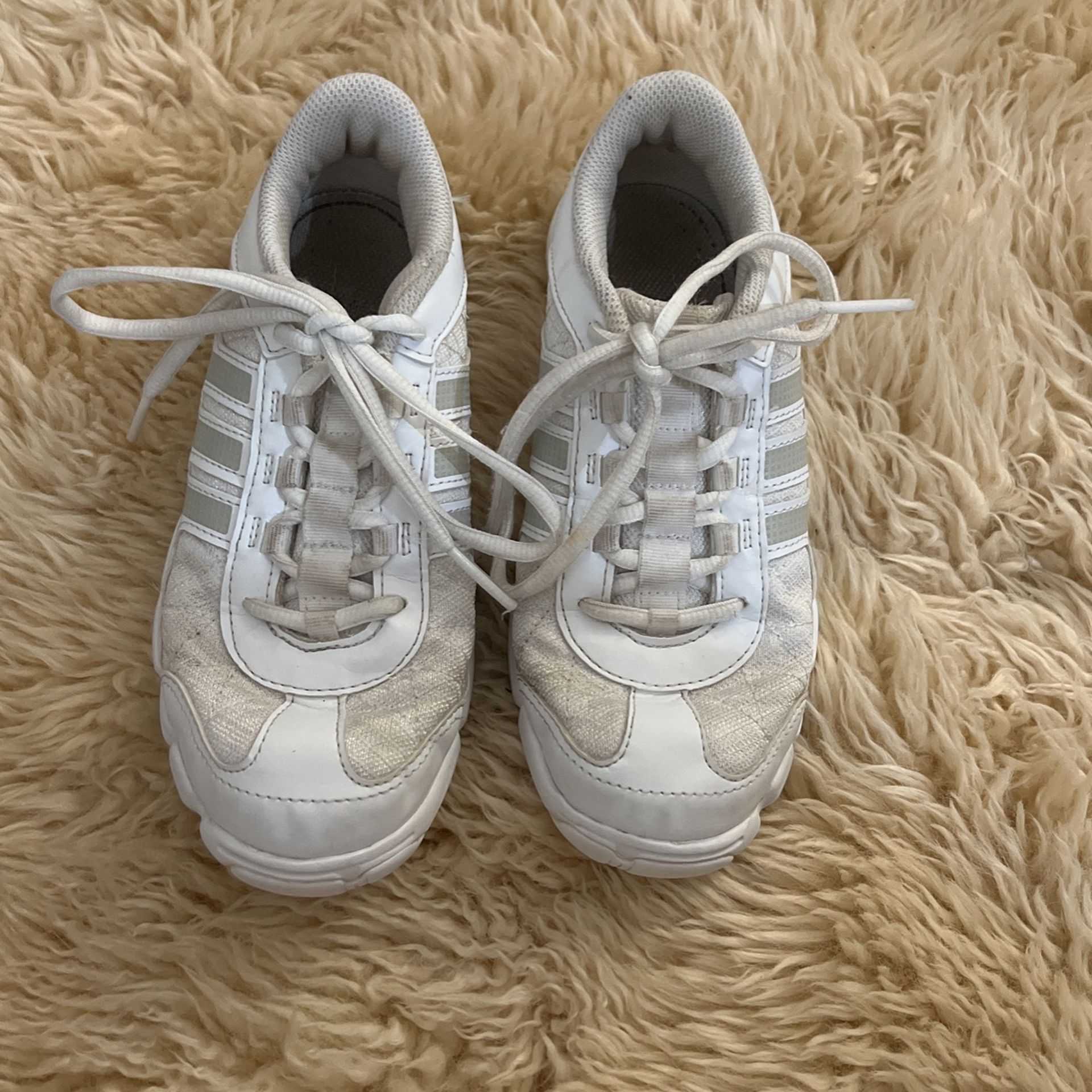 White Adidas cheer sneakers 1.5 big girl Pre loved Great condition Washed and ready for you