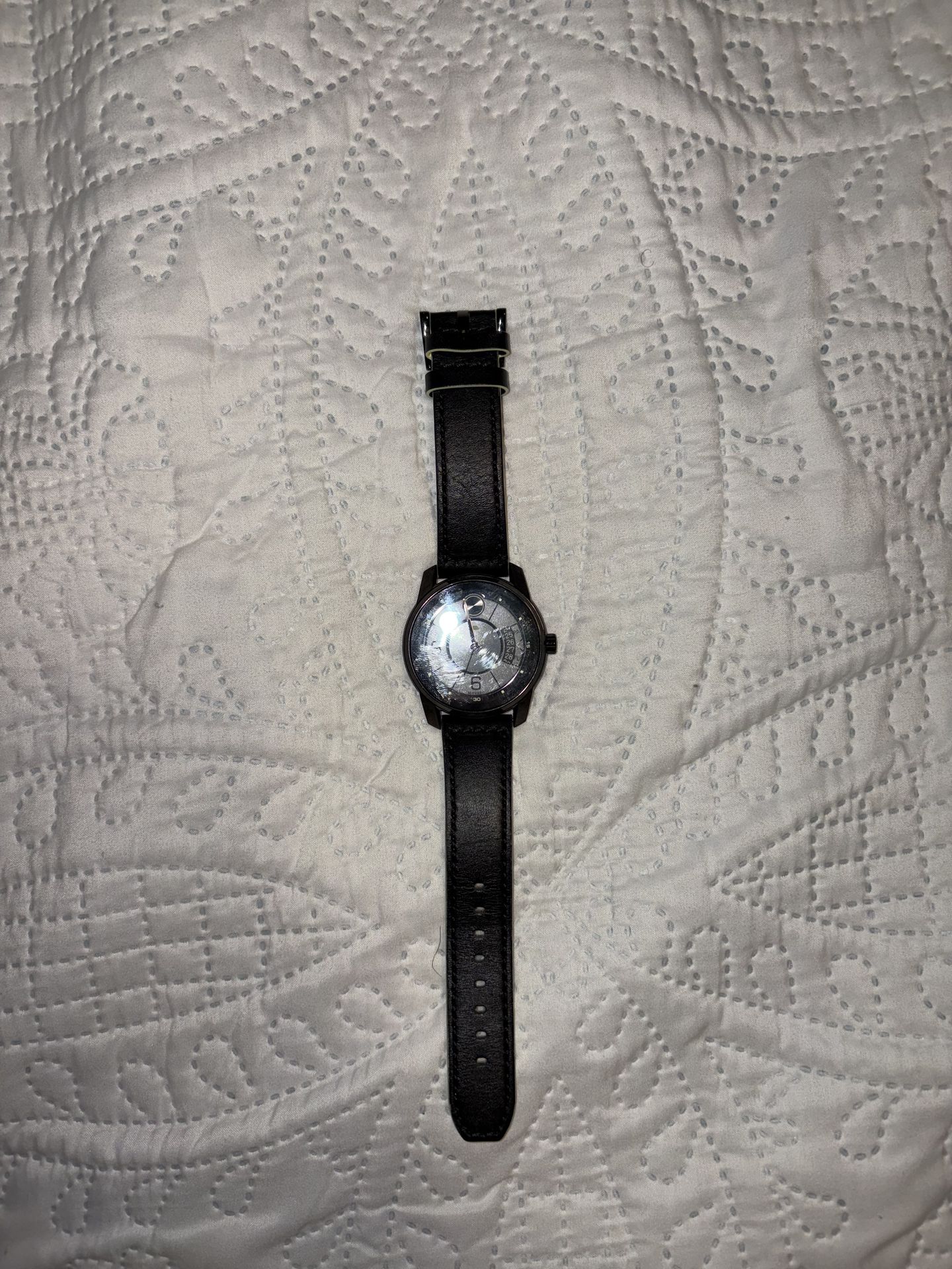Movado Bold Men's Verso Black Dial Black Leather Strap Watch