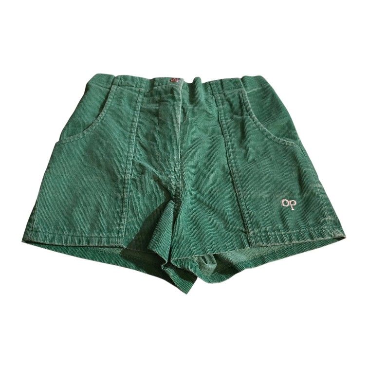Used vintage OP Ocean Pacific Corduroy Shorts Green Girls Size Medium (10). Shows lots of wear to backside, please review all pictures thoroughly. Measures approximately 10.5" waist (flat) 10" long (front) 11" long (backside)