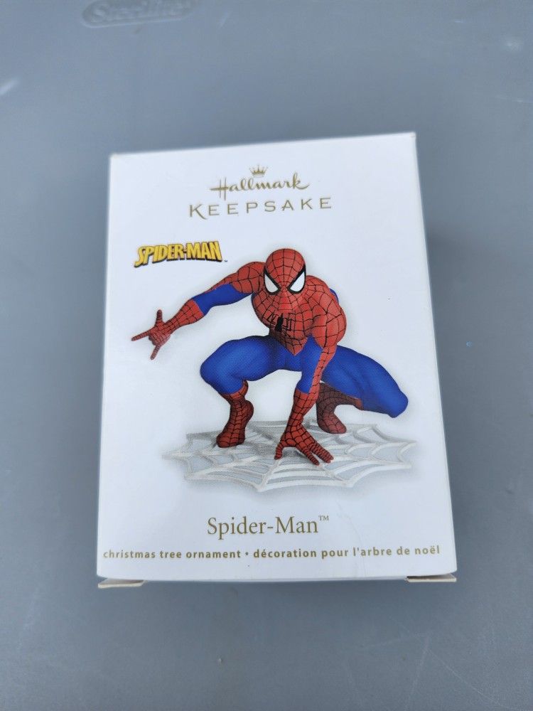 Used Hallmark spiderman ornament in great condition . The box is showing some signs of age and use.