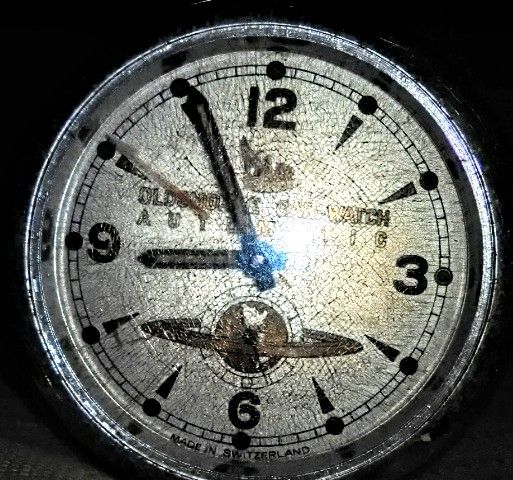 Maar, Switzerland, Oldsmobile Car Watch Automatic steering wheel clock It winds with every steering wheel turn, and also can be rim wound if necessary. It is heavy, well made, and has a gimballed winding weight inside the bullet-shape steel case. small round rear glass covers .i hear ticking but did not test long term. Bezel outer diameter is 2 1/2" For pick up only