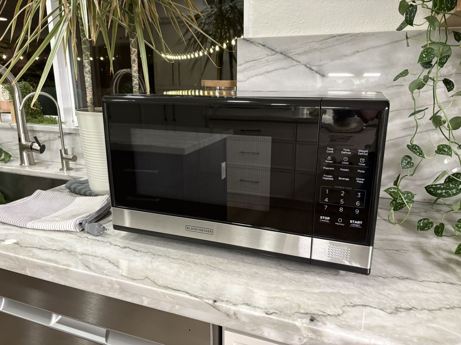 BLACK+DECKER Microwave (1000W) -Retails for $130 -Includes Turntable -Black & Stainless Steel -Large LED digital display, easy-to-read control panel, child safety lock, interior light, removable 12.4” glass turntable -Dimensions (L x W x H): 20.6” x 16.5” x 11.8”; Color of door frame is stainless steel, enclosure is black -1000W & 1.1cu.ft In perfect working order and clean. Pick-up only, cross streets are 44th Street and Bell Road.