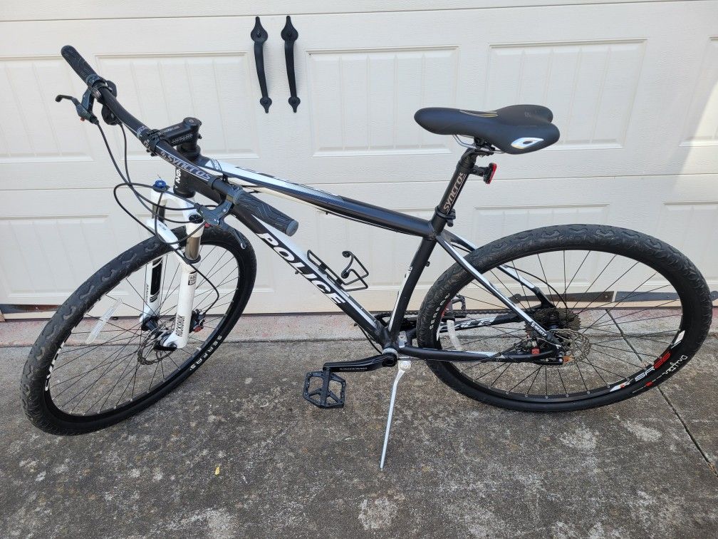 Has Syncros handlebars and seat post, Syncros front wheel, SunRingle rear wheel both with Drifter 29" tires, Shimano Deore gears with Avid brakes, and RockShox XC32 front end. Nice setup. Used with signs of normal use. Has police decals still on but you can remove if you want.
