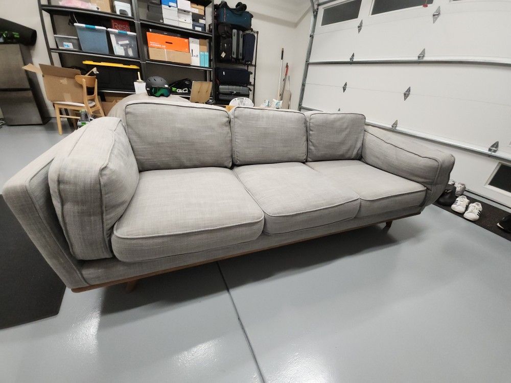 Switching to a different colored sofa so selling my like new Article Timber sofa! Bought for $1299 pretax, $1430 post tax. Color is in Pebble Gray. Dimensions are 32 H x 90 W x 35 D. Pick up in Pinehurst. Can provide more pictures if interested. Sofa is in garage so no stairs will be involved. Price firm!