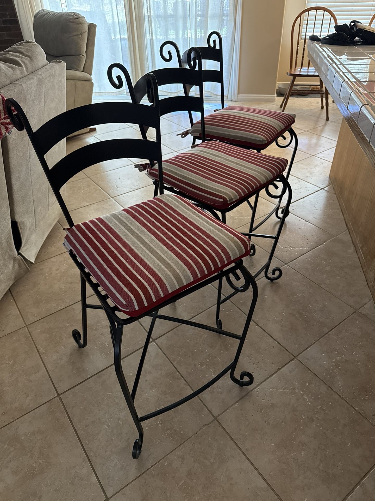 3 right iron breakfast bar chairs for sale 125$