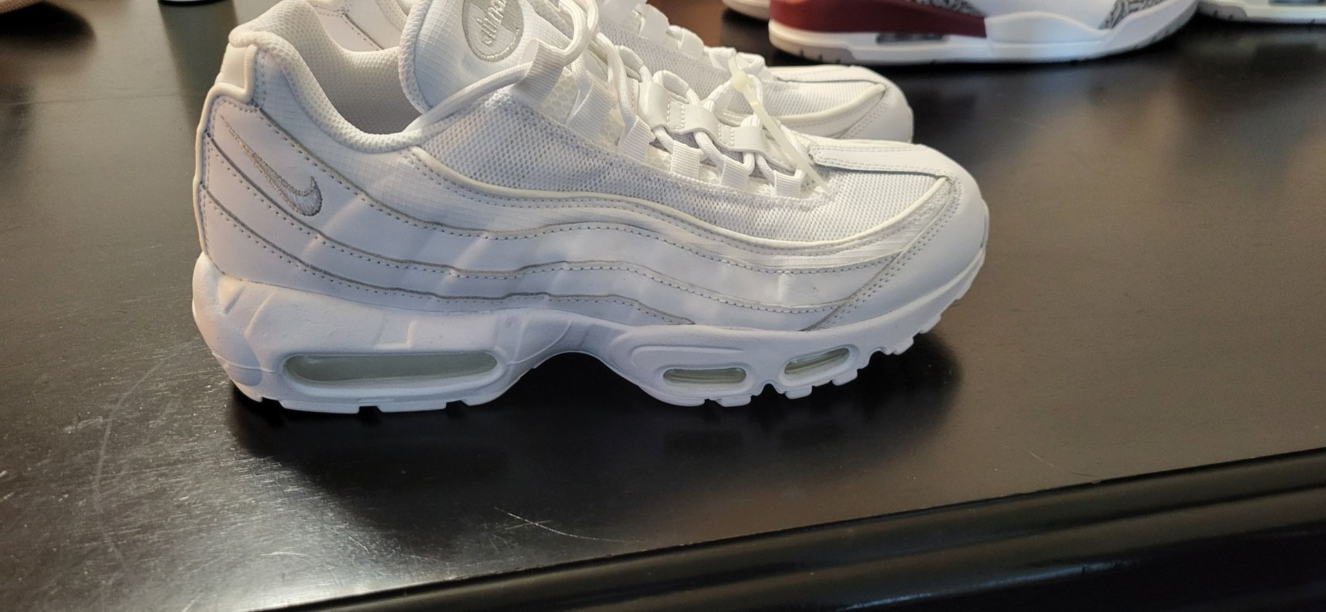 Brand new Nike Air Max 95 in all white. Men’s size 8. Never worn. 100% authentic. No box. Clean condition, no flaws. Local pickup preferred. Cash only. Price: $90 OBO