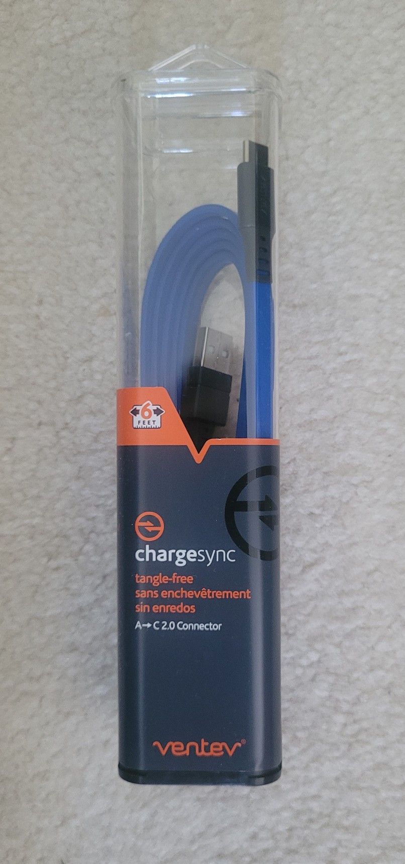 Chargesync, 6 Feet 1.8 m. USB-C 2.0 up to 480 mbps. Tangle-free. A - C 2.0 connector. Certified hi-speed USB. Convenient charging and data sync. 3.0A. Made for: USB-C devices + laptops. RoHS. Limited Lifetime Warranty. [https://offerup.com/redirect/?o=dmVudGV2LmNvbS93YXJyYW50eQ==](https://offerup.com/redirect/?o=aHR0cDovL3ZlbnRldi5jb20vd2FycmFudHk=). [https://offerup.com/redirect/?o=dmVudGV2LmNvbS9tb2JpbGU=](http://https://offerup.com/redirect/?o=dmVudGV2LmNvbS9tb2JpbGU=)