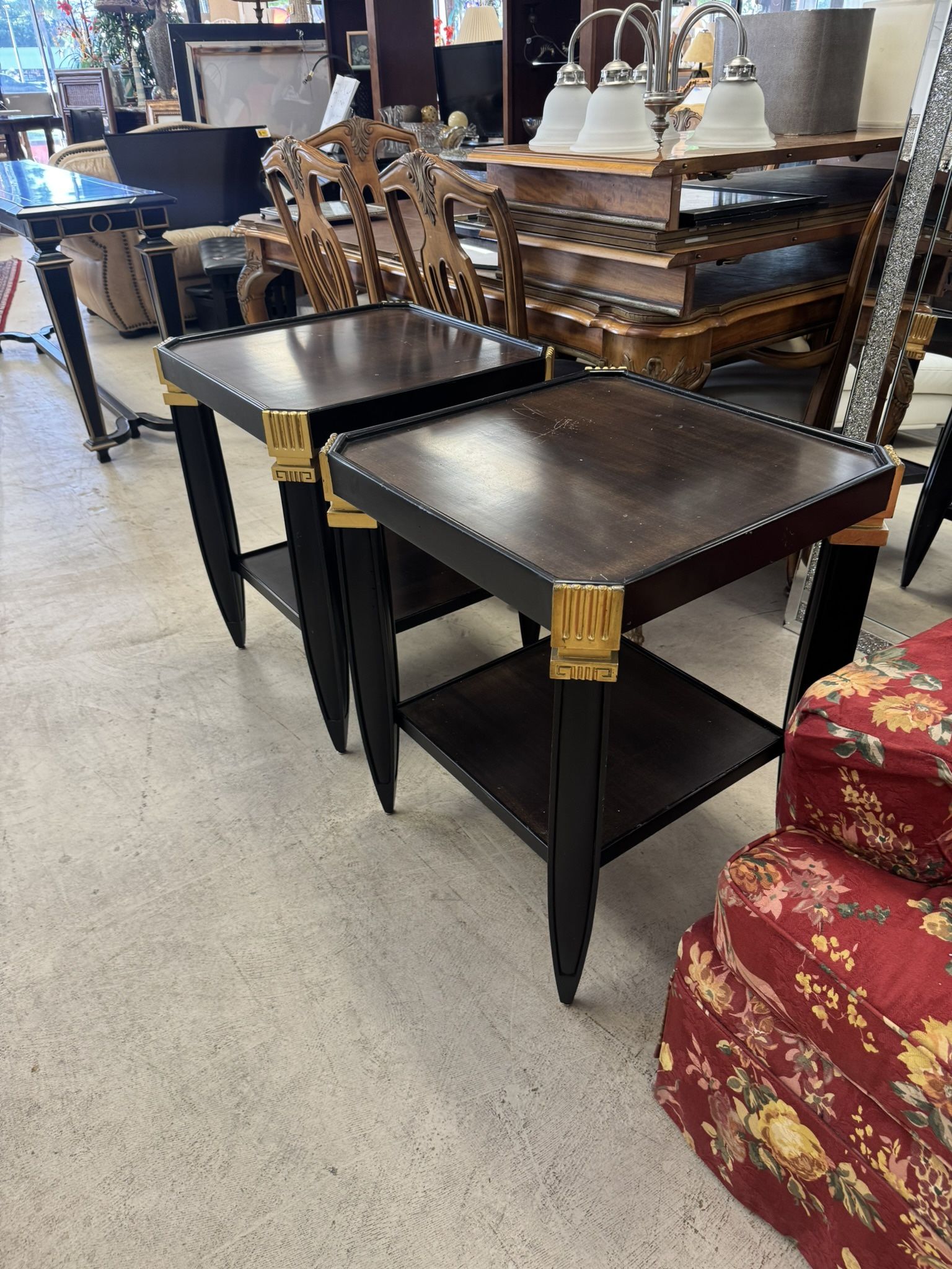 Pair of French Style Mid-Century ebonized end tables - 24” x 24”