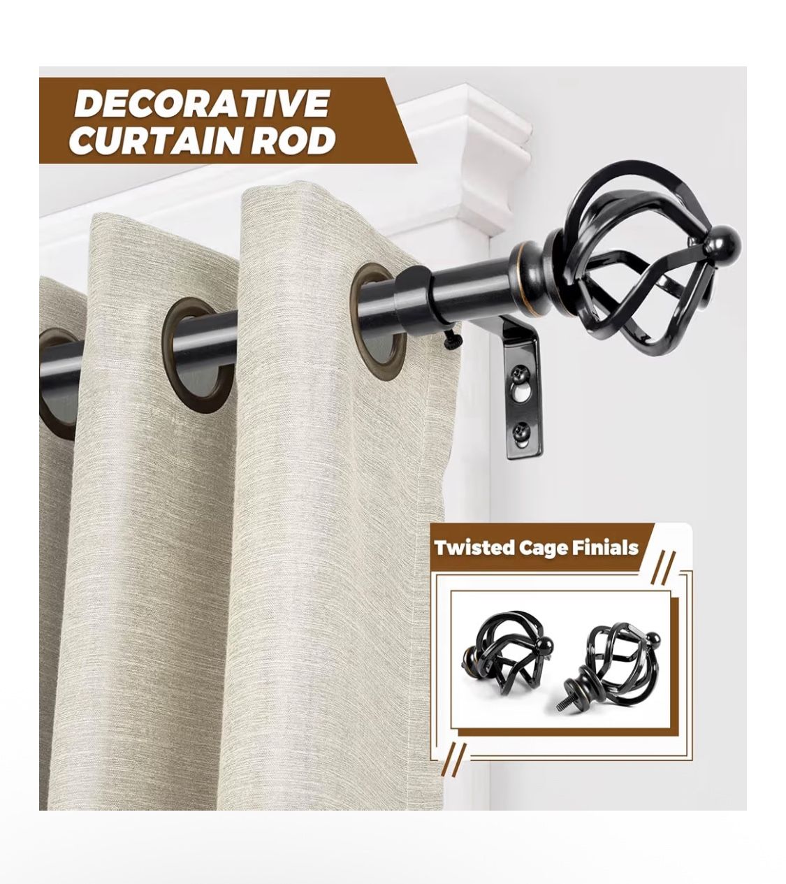 Tropicana & Hualapai. Black Curtain Rod 32 to 58 Inch(2.6-4.8ft), Adjustable Curtain Rods for Windows 28 to 48 Inch, 3/4 Inch Splicing Drapery Rods with Twisted Cage Finial