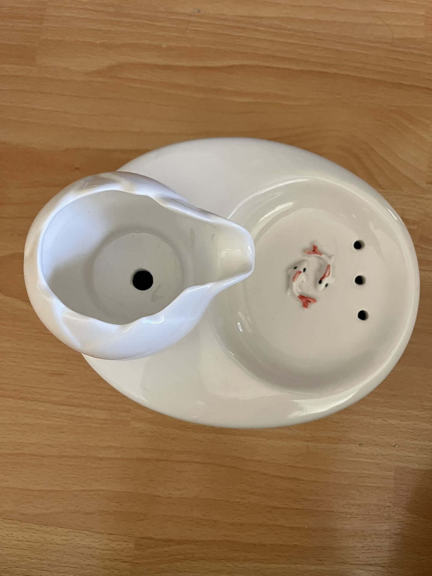$15 New 8x7x6 high Pump needs to be bought separately White, I also have a blue one Ceramic, healthier than plastic or stainless steel Adorable fish design Water fountain Pet supplies Ok for small dogs