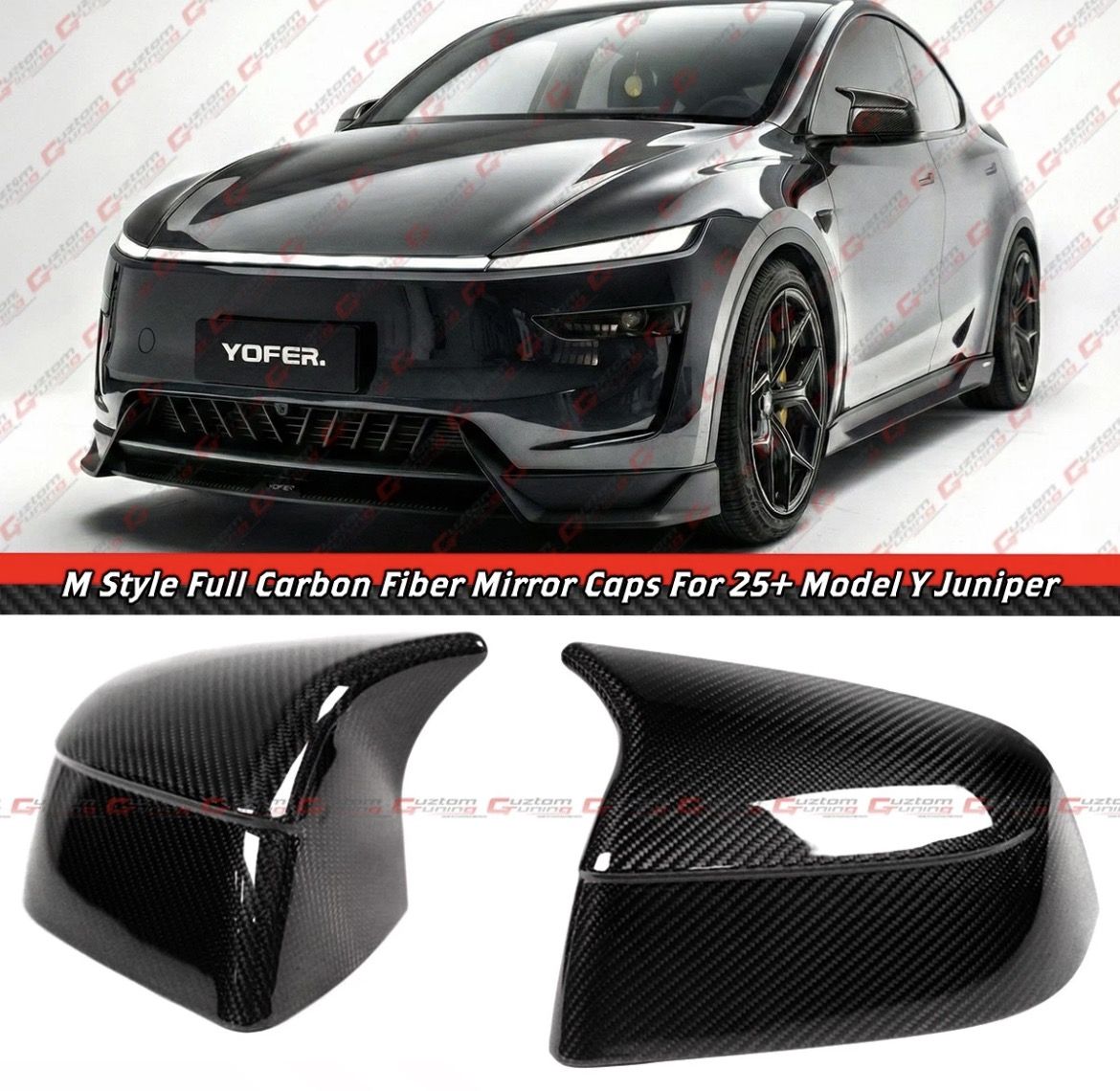 25-26 Tesla Model Y Juniper M Style Full Carbon Fiber Side Mirror Covers