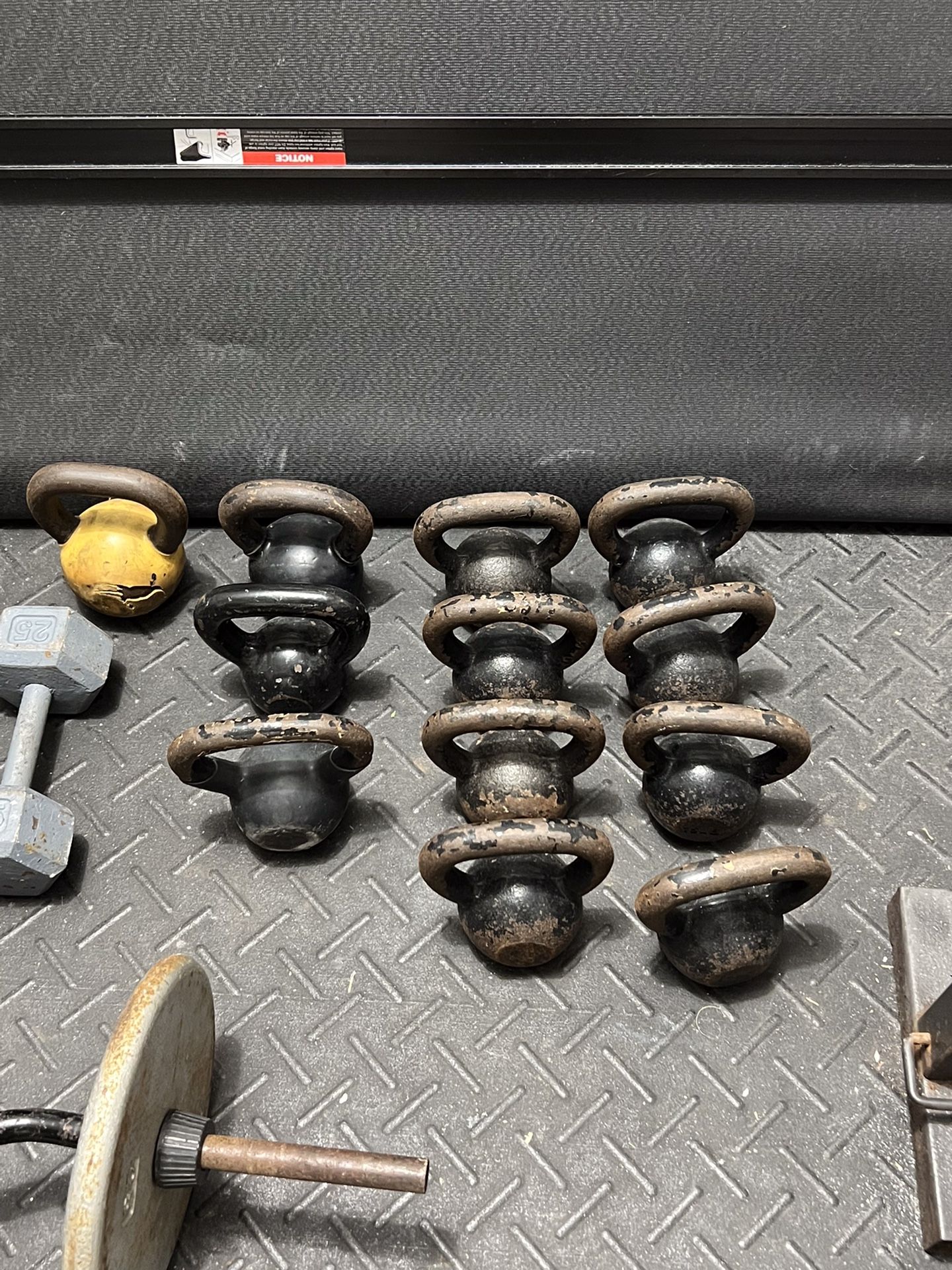 15lb kettle bell weights 2 for 30$ or 1 for 20$ or 150$ for all 12 Pesas weights squat legs bench pecho