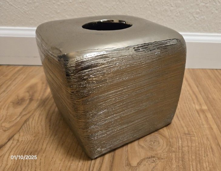 Decorative Tissue Box Cover Holder Square Metal Silver